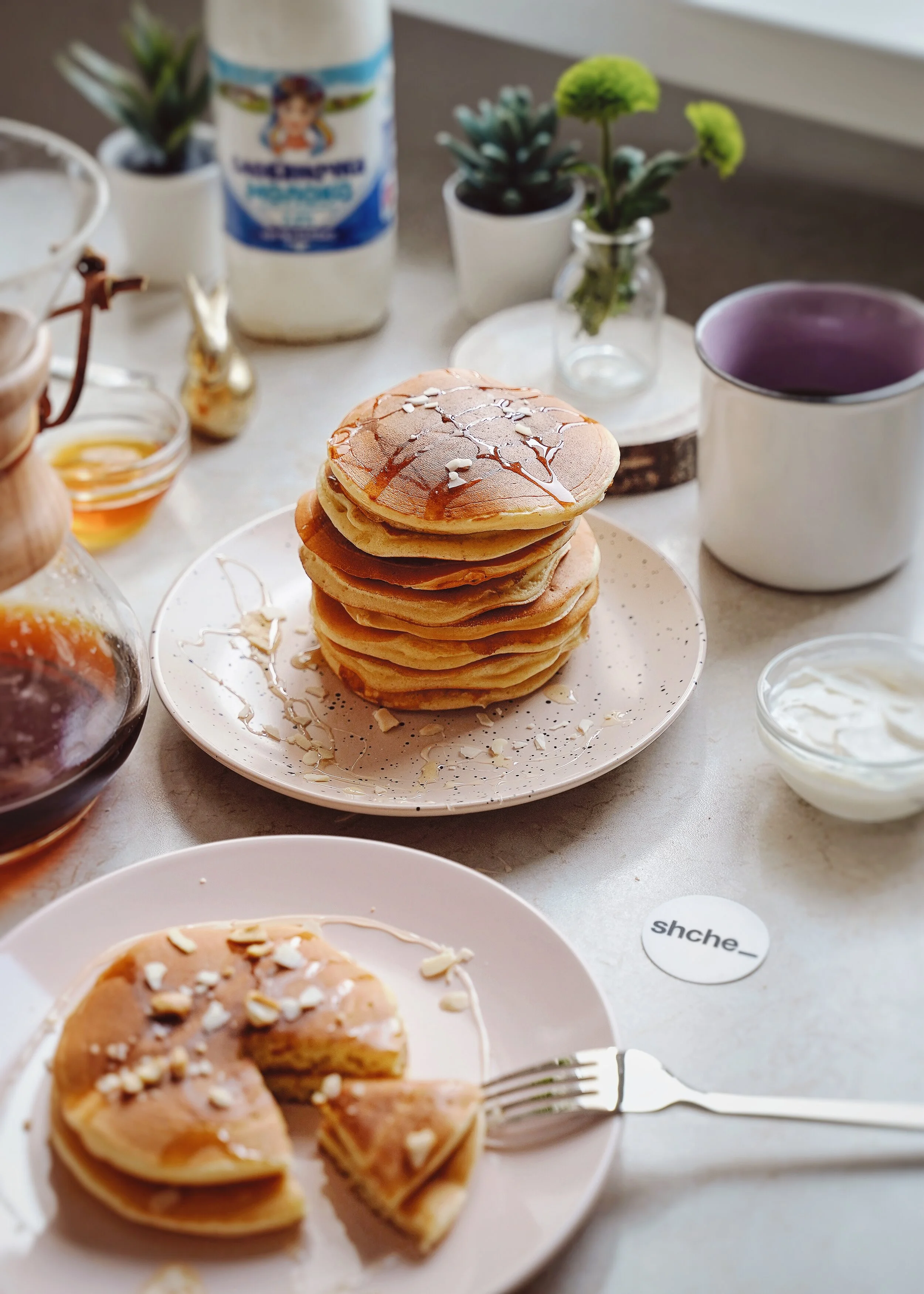 2 eggs, sausage or bacon ,pancake or croissant waffle, french fries or toter tots